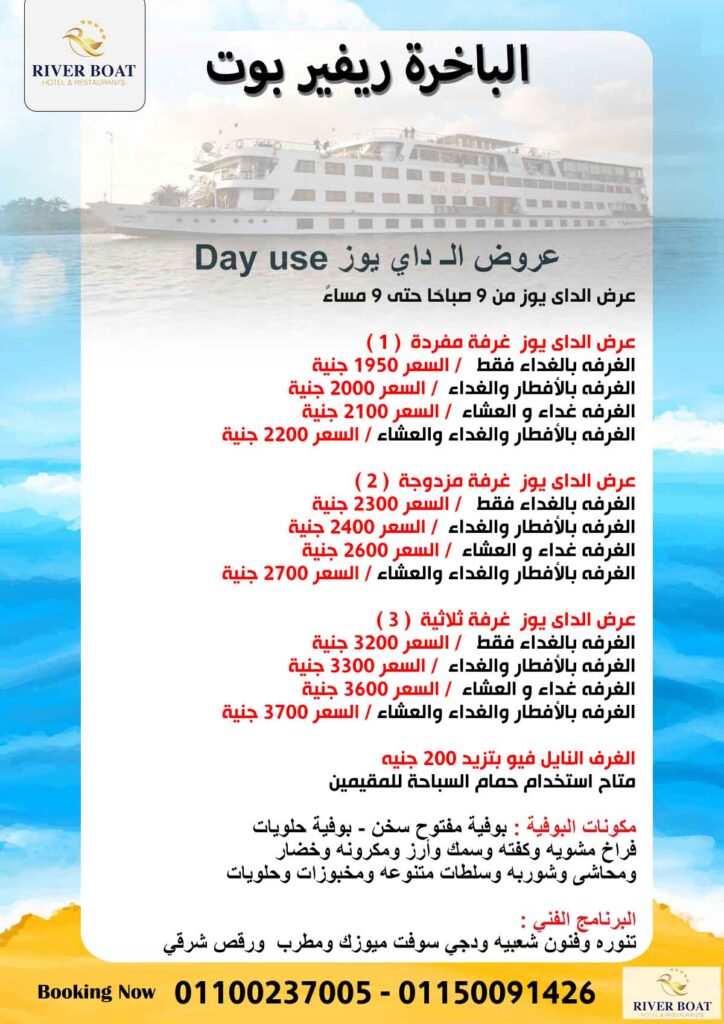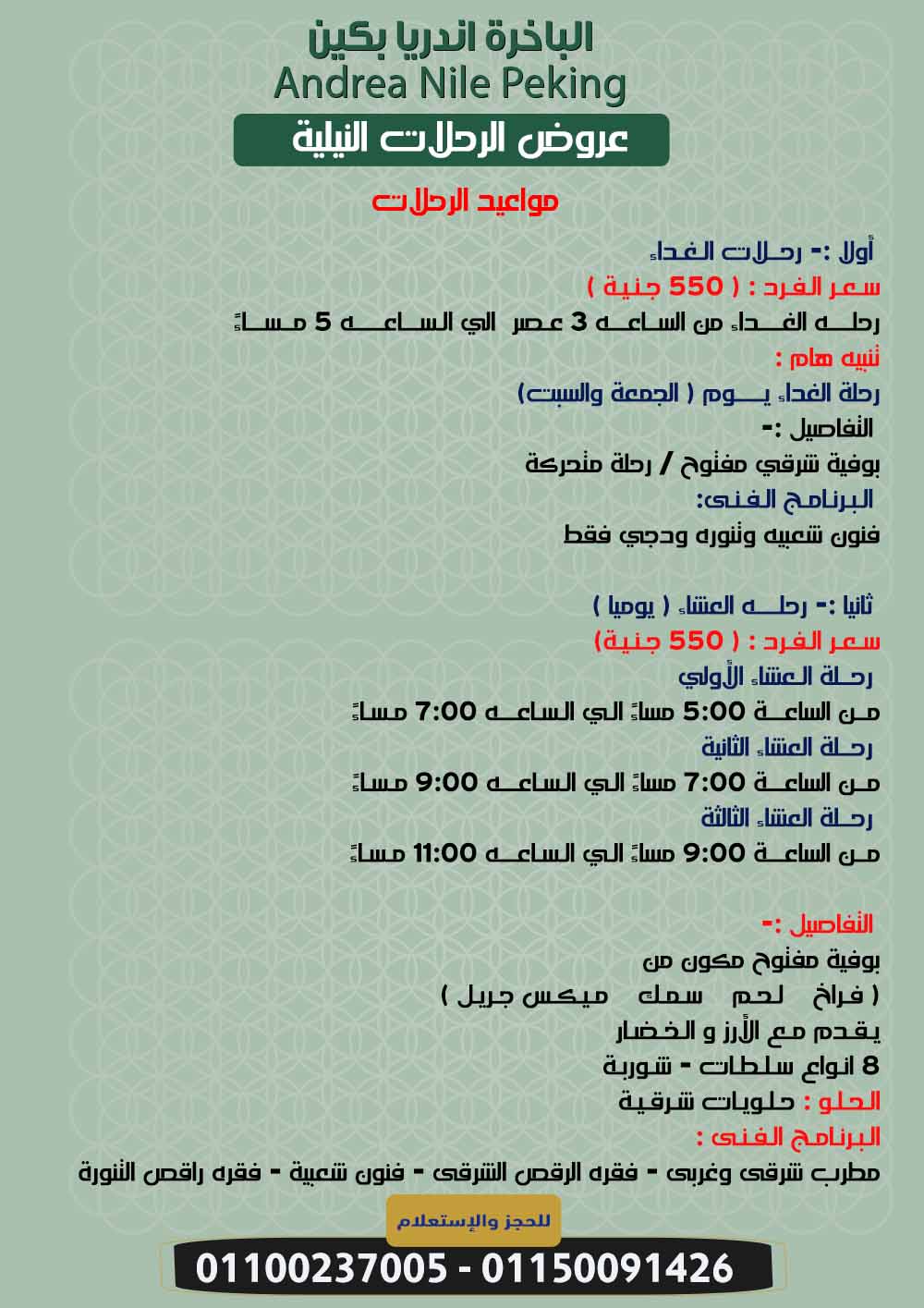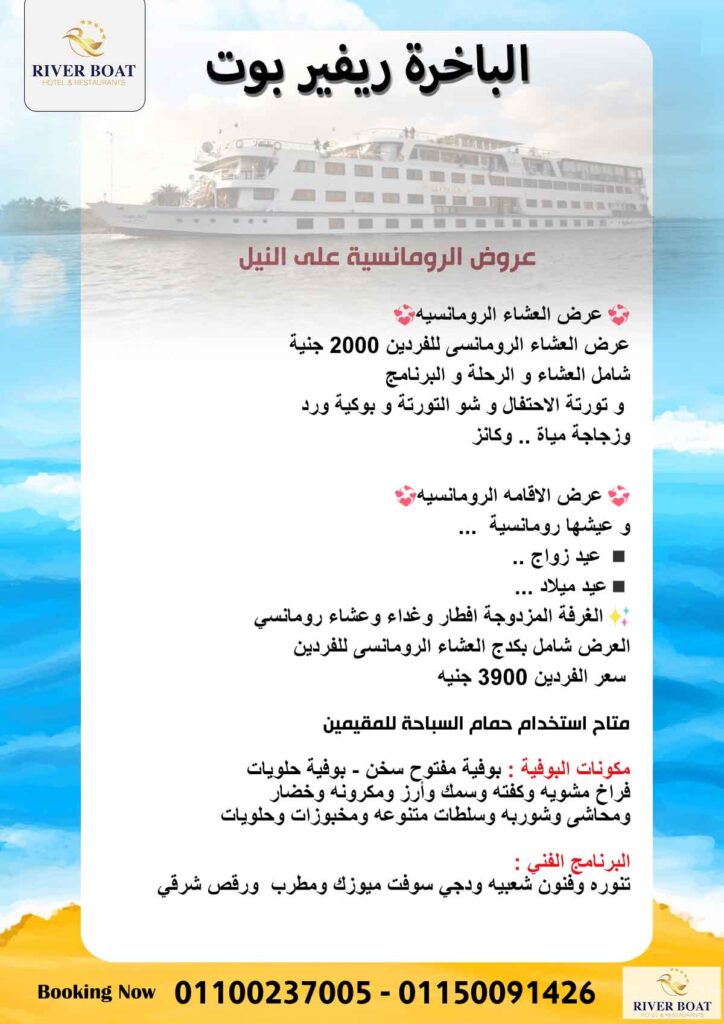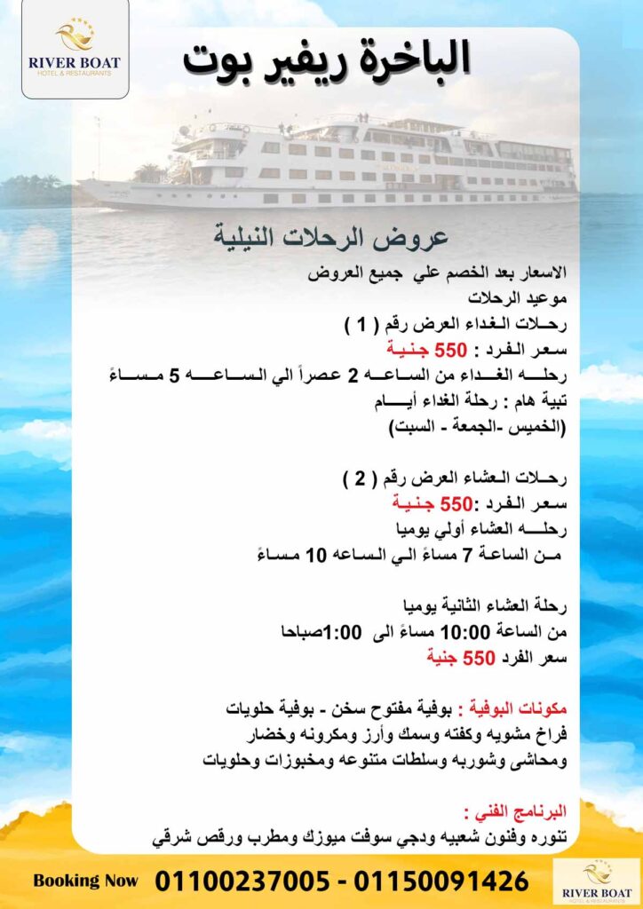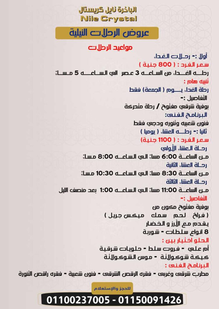 قم بالضغط على الثلاث نقاط بالأسفل لمتابعة جميع عروض البواخر النيلية