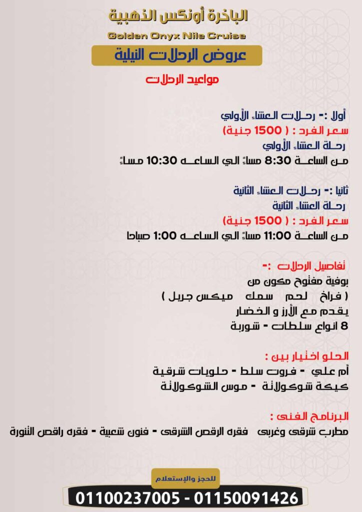 قم بالضغط على الثلاث نقاط بالأسفل لمتابعة جميع عروض البواخر النيلية